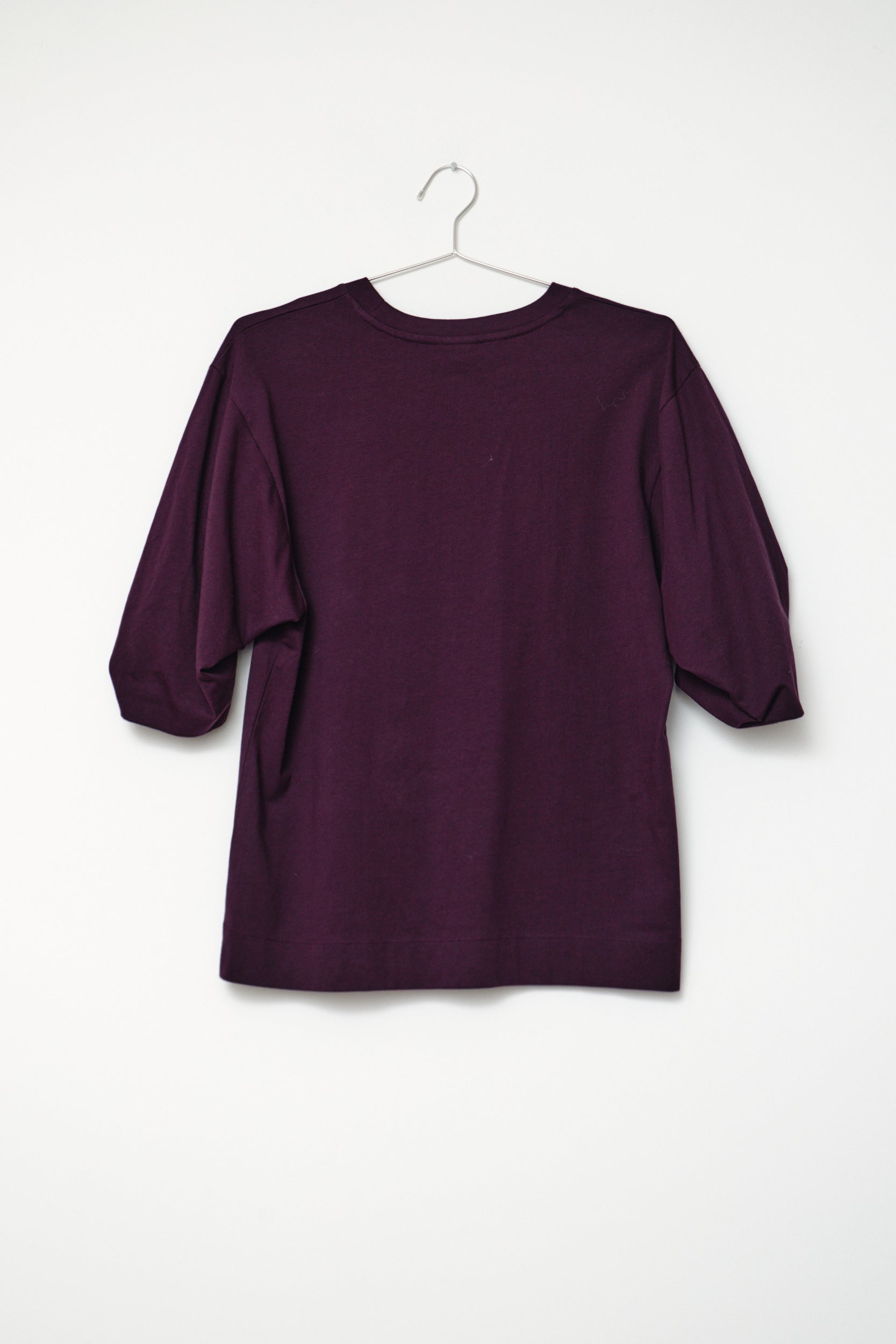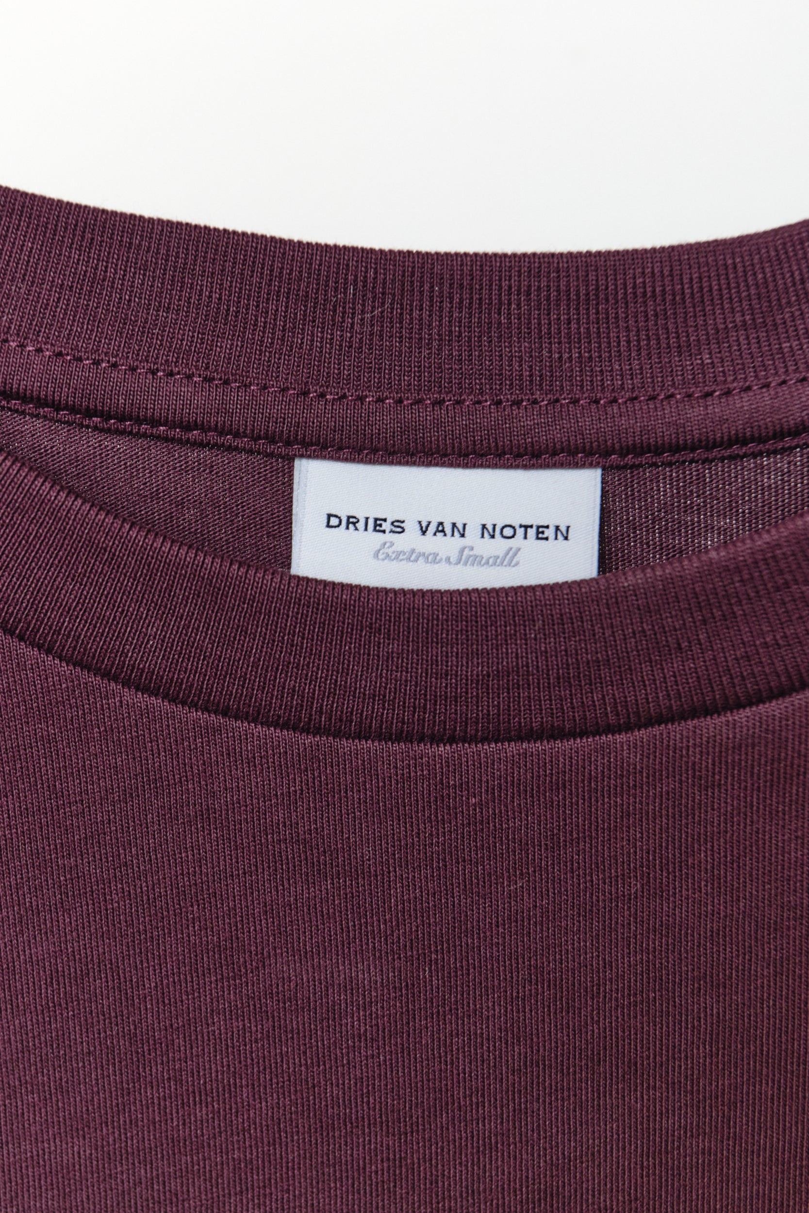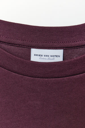 Dries Van Noten jersey oversized burgundy t-shirt crafted for a relaxed yet refined fit. Features short sleeves with a softly draped front design.