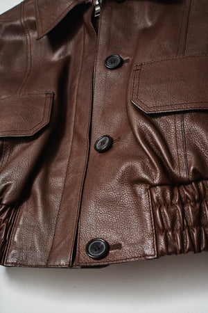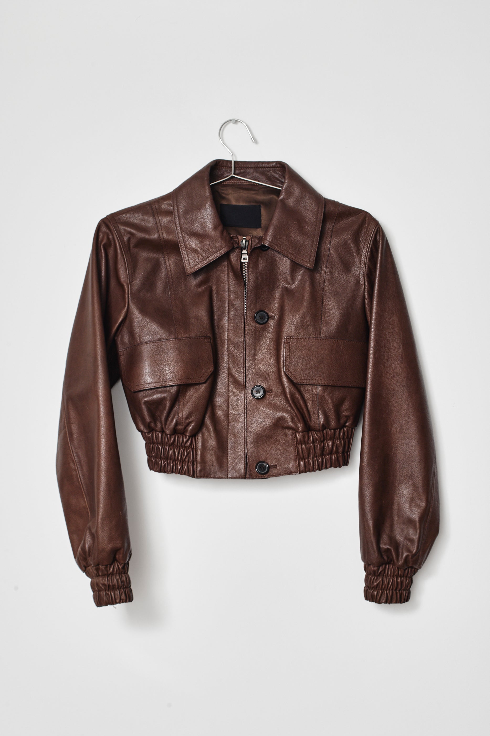 PRADA BROWN LEATHER BOMBER (XS/S) - ENSO Vintage