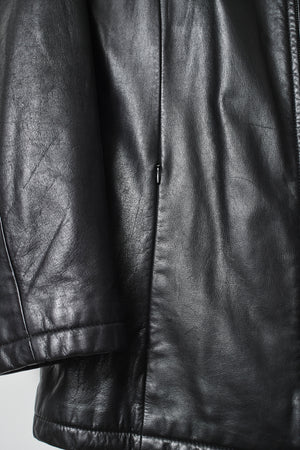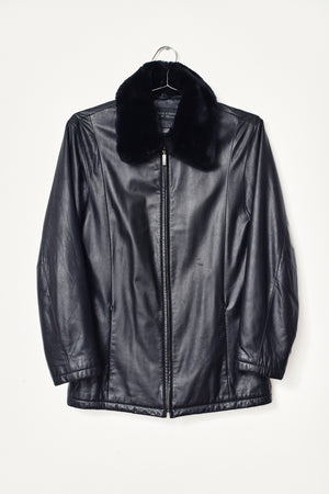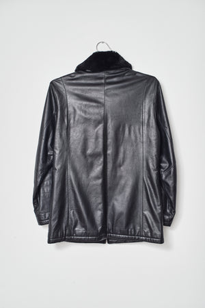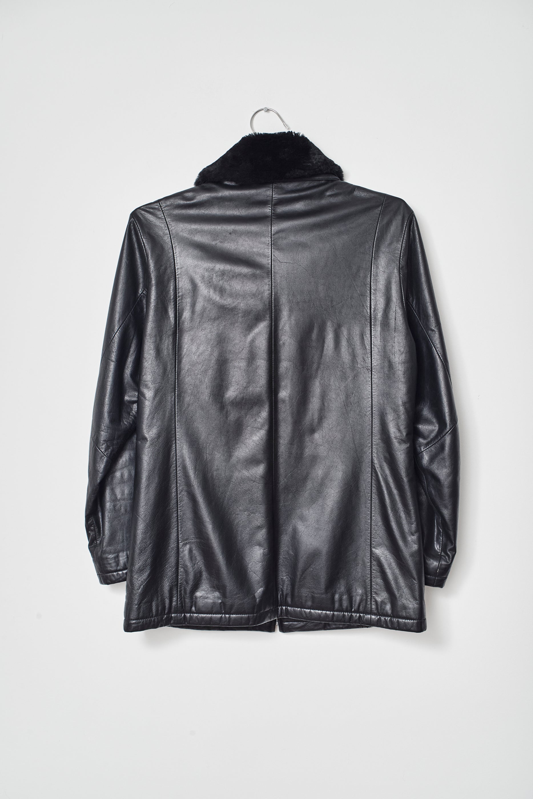 Classic black leather jacket ft a soft detachable faux-fur collar. Clean lines, a straight fit and a full zip closure. Wear it with collar for a warmer, winter look - or remove for a minimal, sleek silhouette.