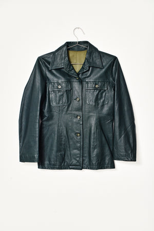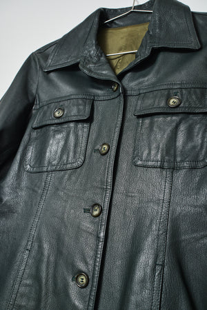 A premium leather jacket with a structured silhouette. Features two front flap pockets, a pointed collar and a button-down closure.
