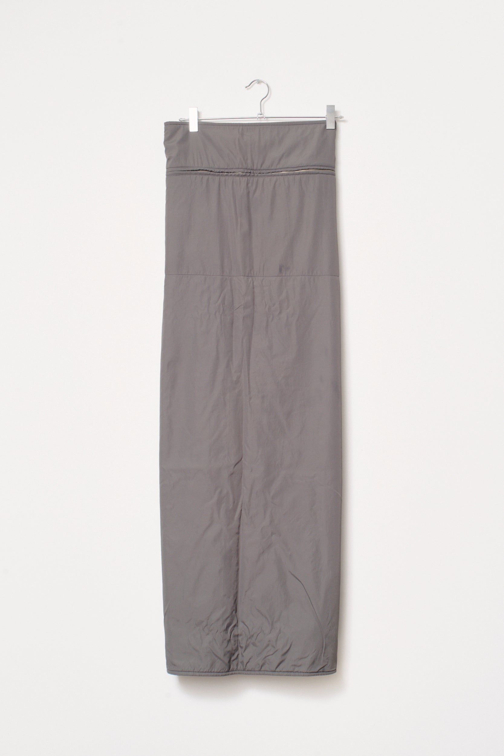 A padded wrap skirt by MM6 in dark taupe-grey hints shade. Features a metal zipper pocket all round and adjustable fitting