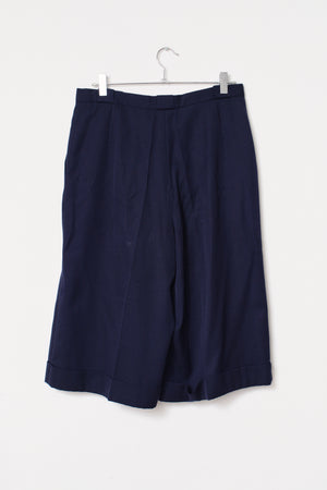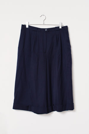Loose bermuda shorts with belt loop and two pockets concealed at the side seams for functionality.