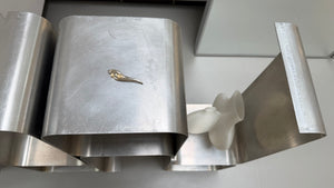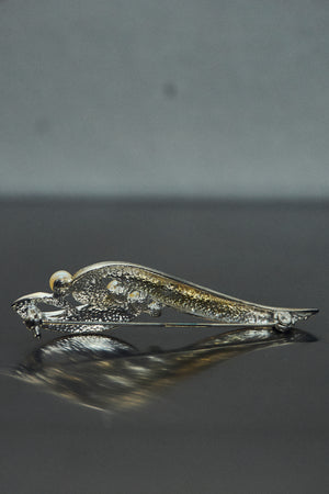 A silver brooch with delicate pearls swirled seamlessly into the design. Simple yet chic, with an understated elegance that feels effortless. Slightly sculptural, playful, and one of a kind — a subtle accent to elevate a coat, knit, or scarf with a touch of refined charm.