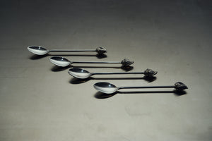 A set of sterling steel mini spoons with delicate shell details at the ends. Minimal yet whimsical, each piece combines sculptural elegance with subtle seaside charm — perfect for entertaining or as a playful tabletop accent.