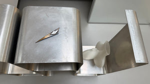 An abstract brooch defined by clean lines and a sharp, elongated form. Sculptural and precise, this piece feels like wearable art — understated, expressive, and one of a kind. A subtle statement to pin on a coat, knit, or scarf, adding a sense of direction and edge.