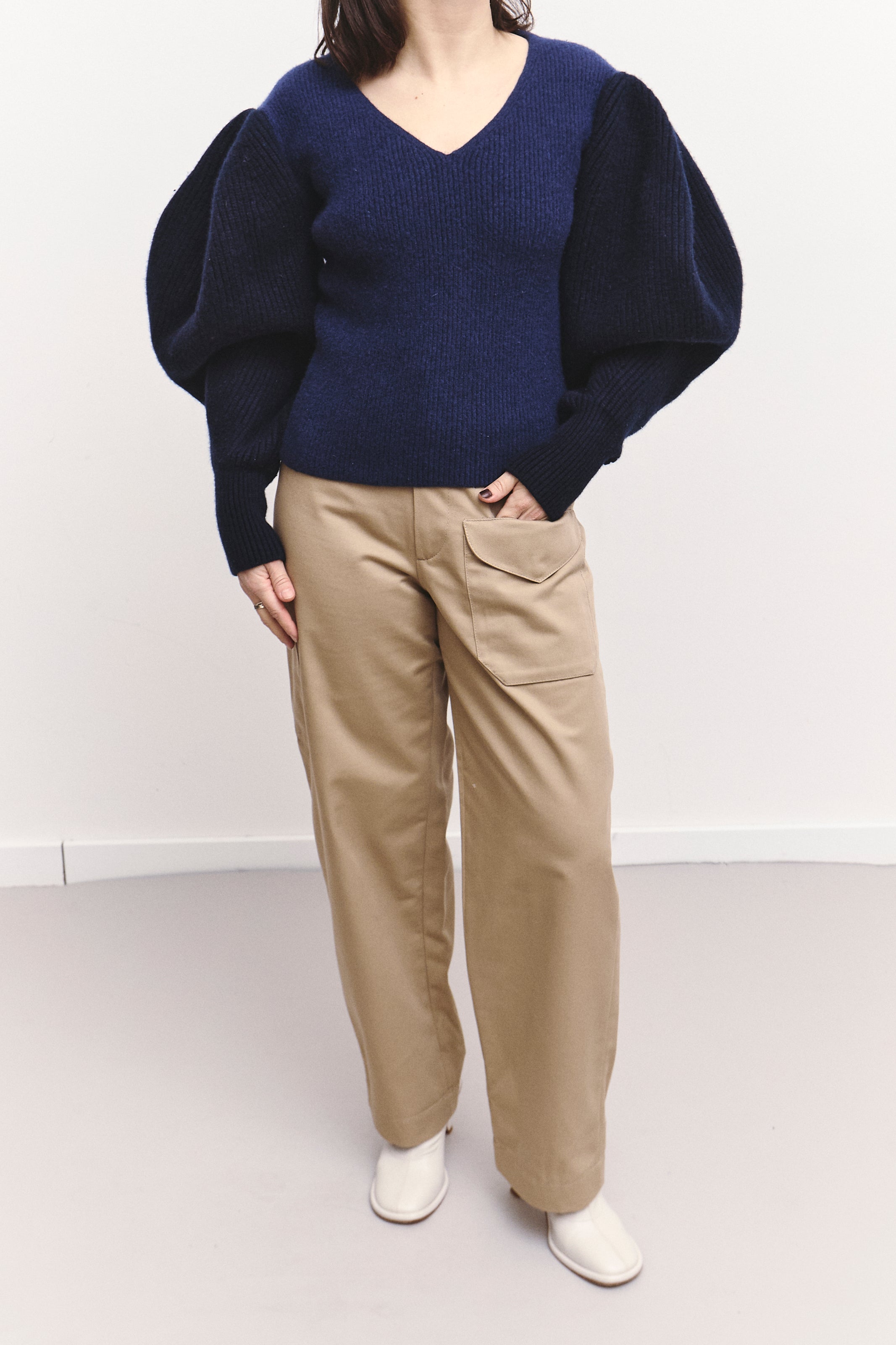 Beige Woolrich pants featuring a button-detail closure, wide high-rise waistband, pocket detailing, and a clean straight-leg fit. Classic, comfortable, and effortlessly refined.