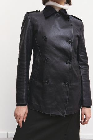 BOTTEGA VENETA LEATHER PEACOAT (XS/S) - ENSO Vintage