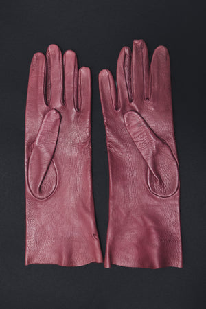 Elegant vintage leather gloves in a burgundy tone. A refined, timeless accessory that adds subtle colour and sophistication to any winter look. Soft, flexible leather with a classic slim silhouette.