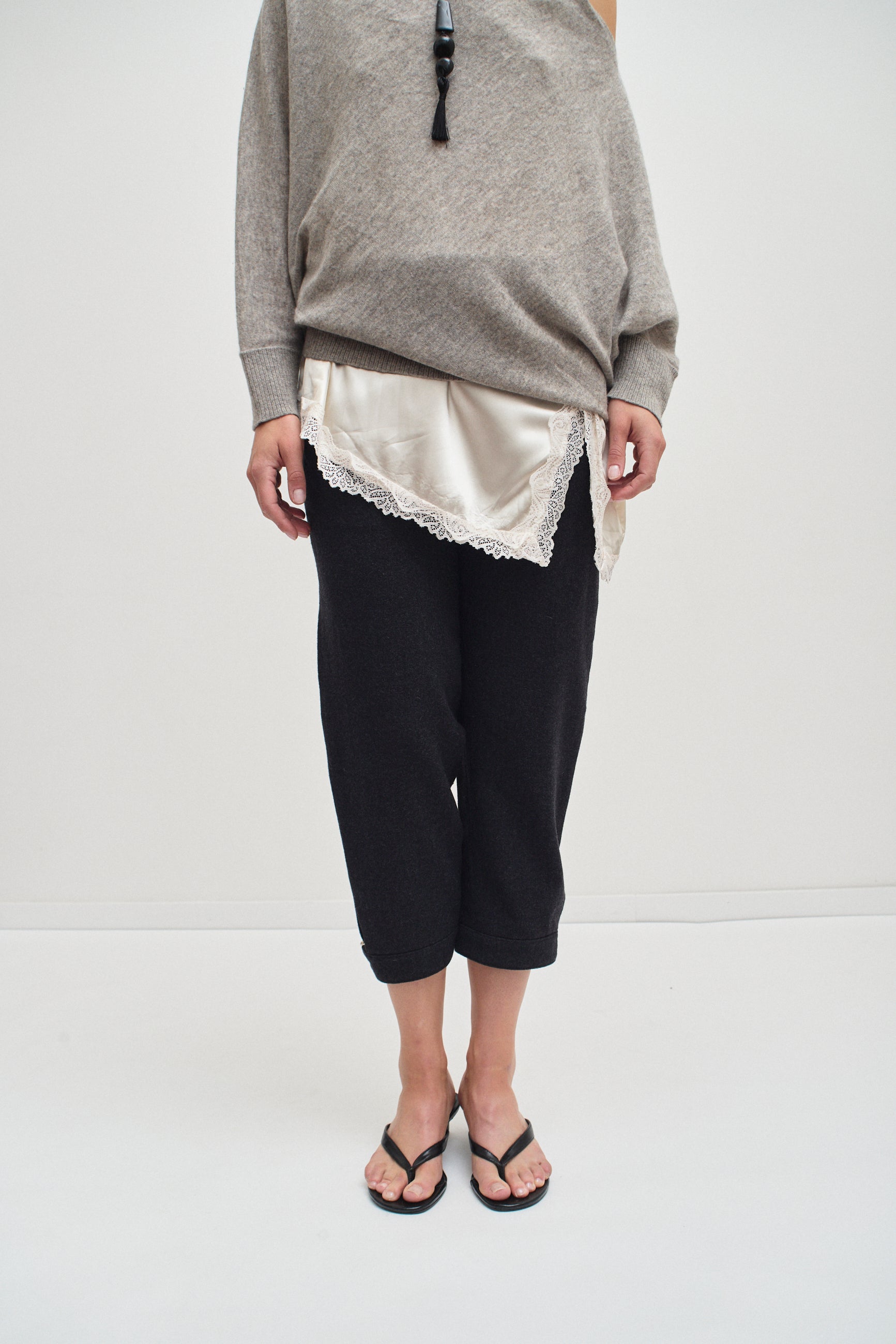 Minimalist slip dress with delicate lace detailing. Designed in a sleek, body-skimming silhouette with thin straps and a fluid drape. Perfect as a statement on its own or layered for a more casual, versatile look.
