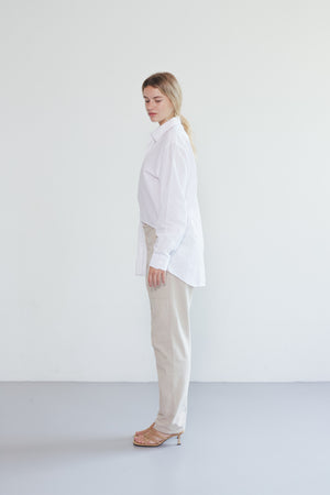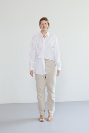 Vintage shirt upcycled into a wrap shirt. A new ENSŌ design made from premium Italian cotton shirts. Featuring a clean look, it can be worn asymmetrical with a gather effect or oversized with a visible cut out side.