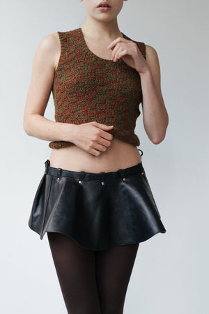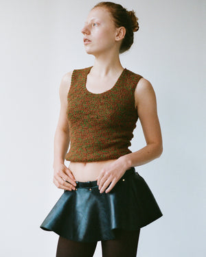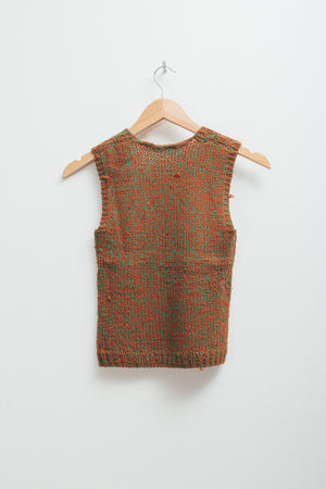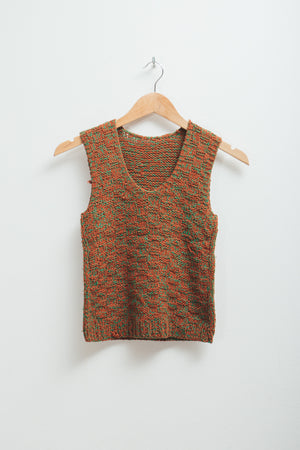 Square knitted top slightly stretchy in melange khaki shades and red.